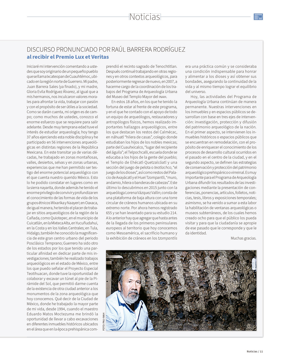Discurso pronunciado por Raúl Barrera Rodríguez al recibir el Premio Lux et Veritas